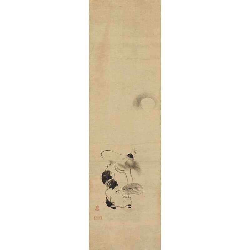 ATTRIBUTED TO SHOKADO 17TH CENTURY FUKUROKUJU POINTING TO THE MOON