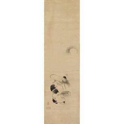 ink on paper, hanging scroll; two seals by the artist sight H: 40 3/4 in, 103.5 cm; W: 10 in., 25.5 cm