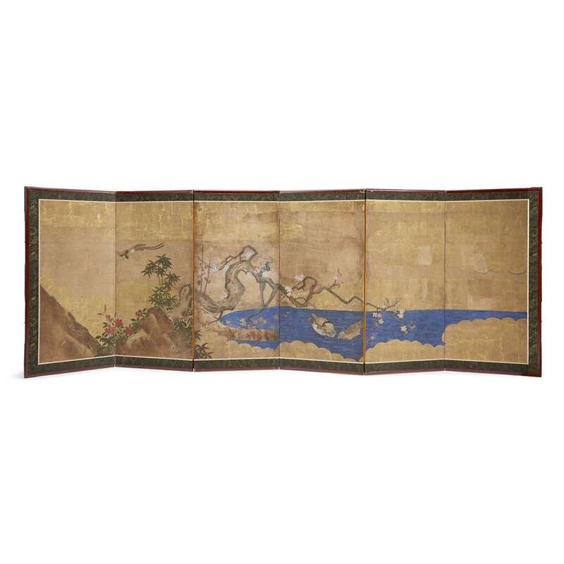 JAPANESE KANO SCHOOL LATE EDO PERIOD, 18TH CENTURY BIRDS AND CHERRY BLOSSOM