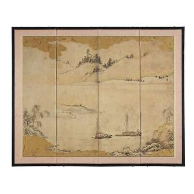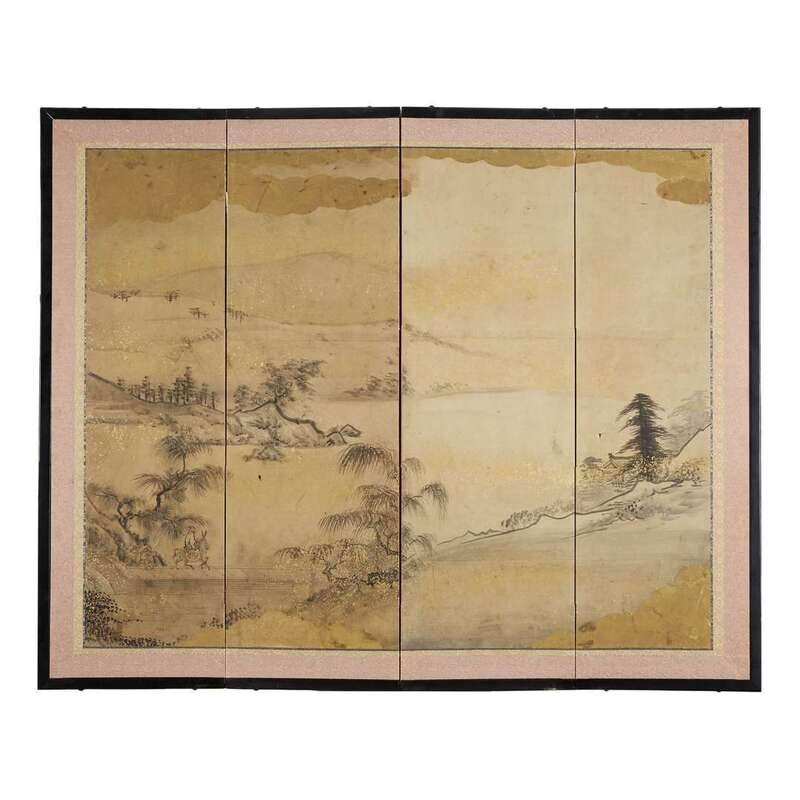 two four-panel folding screens; ink on paper mounted on wooden panel (2) H: 37 1/4 in., 95 cm ; W: 46 in., 117 cm