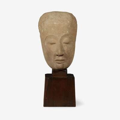 A Thai Ayutthaya-style sandstone partial head of Buddha 17th century