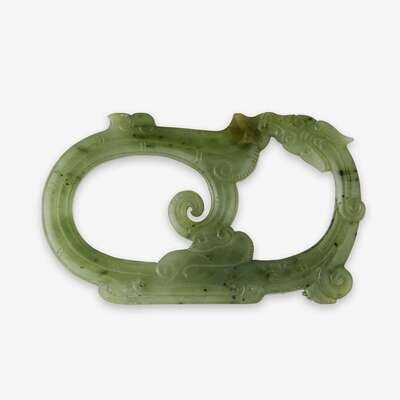 A fine Chinese spinach jade 'kuilong' pendant ming dynasty