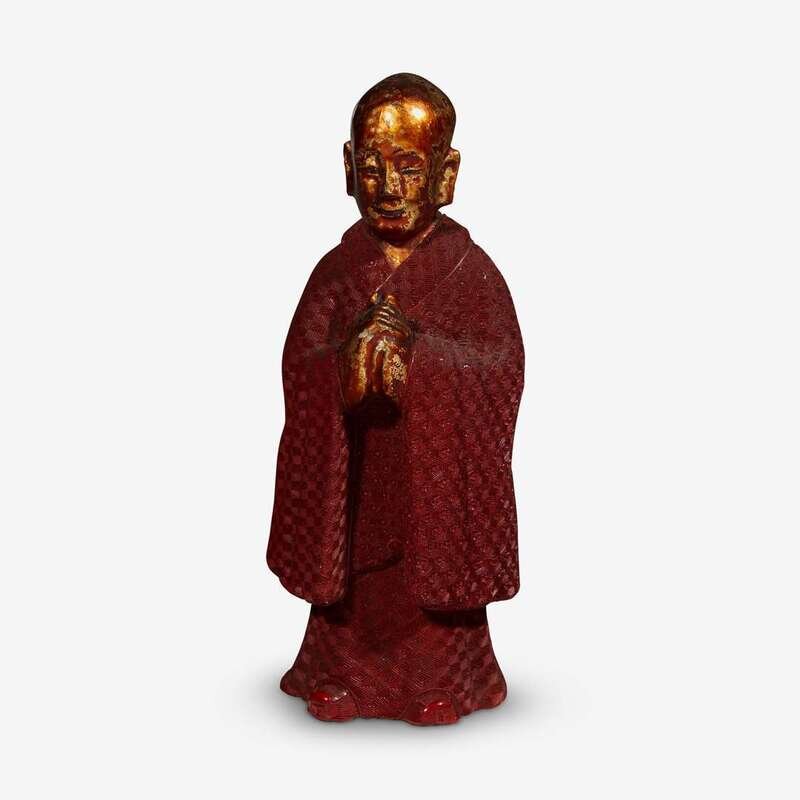 A rare Chinese cinnabar and gilt lacquer figure of a monk qing dynasty