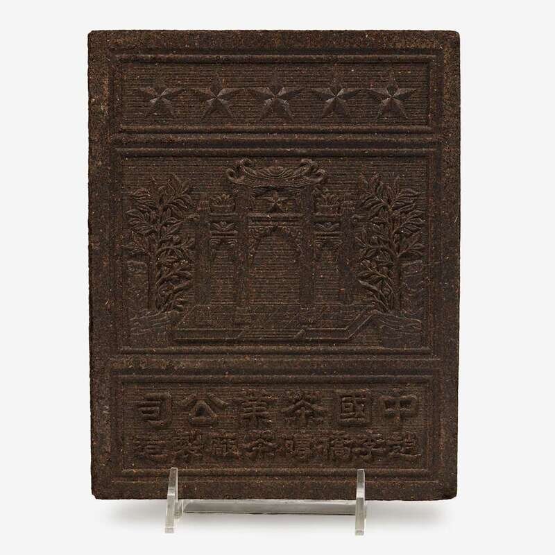 A Chinese pu erh tea brick 'zhong guo cha ye gong si' marked, republic period