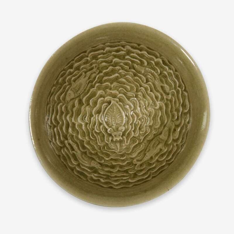 A Chinese 'yaozhou' celadon carved 'three fishes' bowl northern song dynasty
