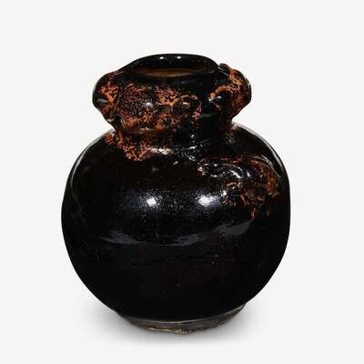 A Chinese 'henan' black glazed 'five turtles' vase song dynasty