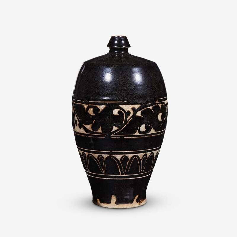 A Chinese 'cizhou' black glazed 'sgraffiato' meiping jin dynasty