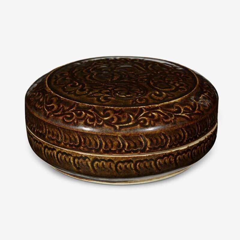 A Chinese 'henan' brown glazed carved circular box and cover jin dynasty