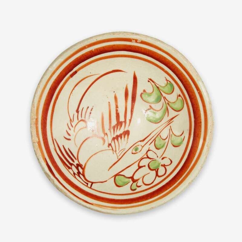 the interior painted in iron-red and green enamels with a stork bearing a willow branch.