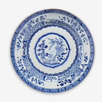 A Chinese blue and white 'garden scene' dish kangxi period
