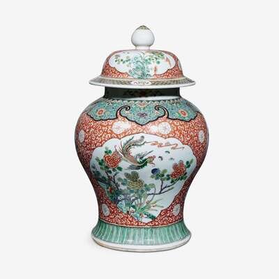 A large Chinese famille verte baluster jar with cover 19th century