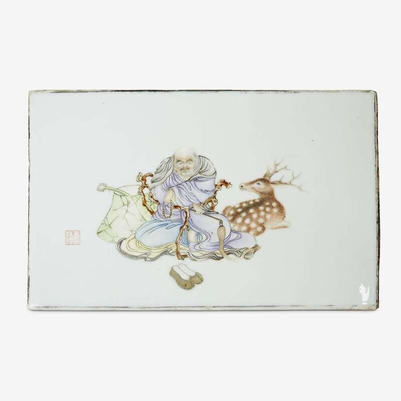 A Chinese famille rose 'immortal' porcelain plaque 19th century