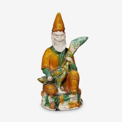 A Chinese Tang-style sancai glazed figure of a semite merchant force feeding goose qing dynasty