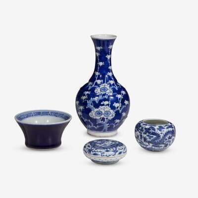 A group of four Chinese blue and white porcelains 19th century