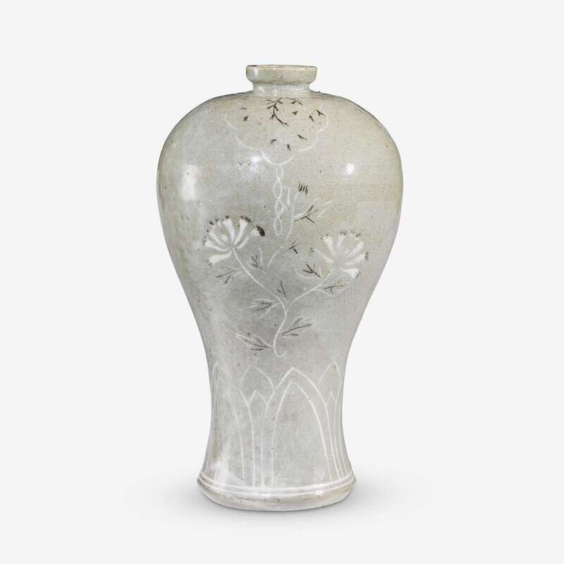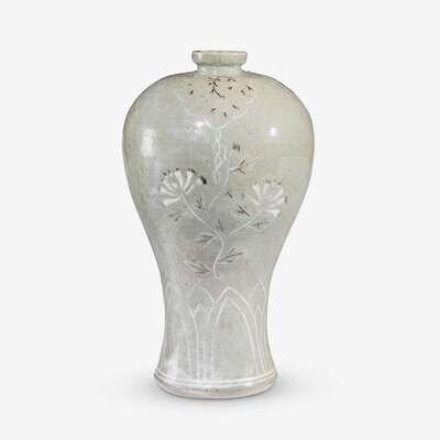 A Korean slip decorated celadon vase, maebyong joseon dynasty