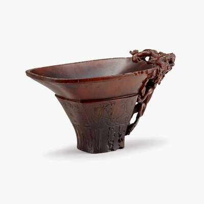 A finely carved Chinese rhinoceros horn libation cup 18th century