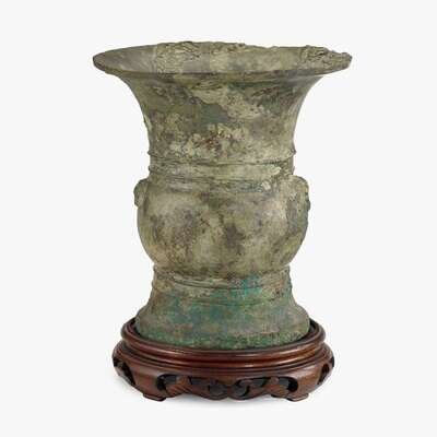 A Chinese archaic bronze ritual wine vessel, Zun early western zhou dynasty, 11th century bce