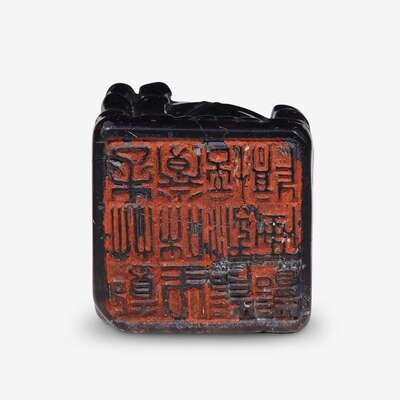 An unusual Chinese black jade scholar's seal 19th century