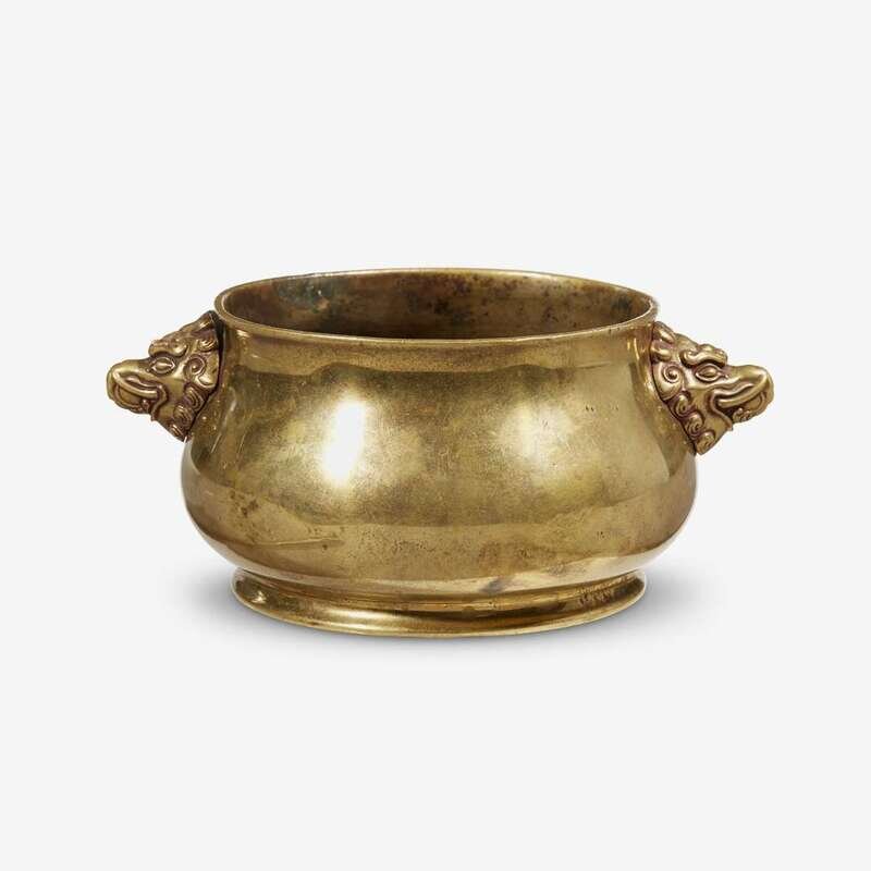A Chinese bronze twin mask censer xuande six character mark, qing dynasty
