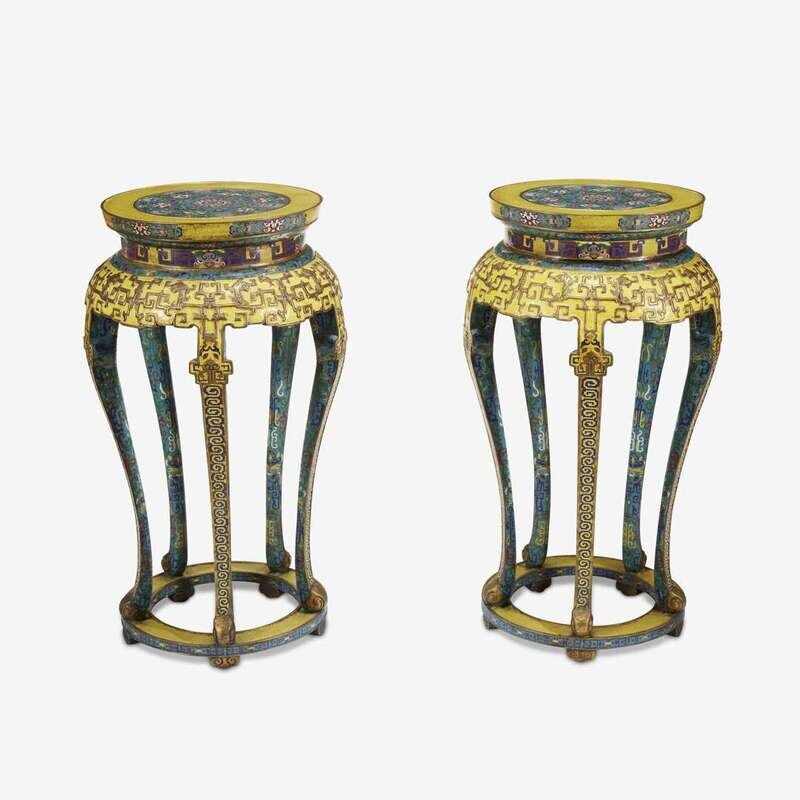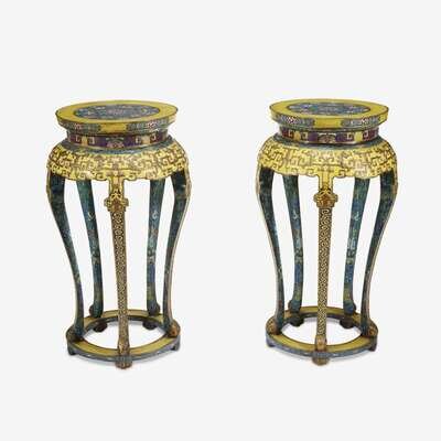 A pair of large Chinese cloisonné enamel yellow ground stands early 20th century