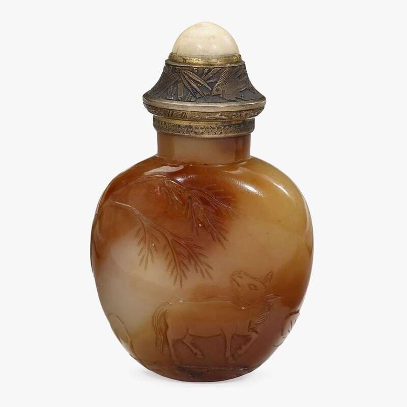 A Chinese brown and white jade ovoid snuff bottle qing dynasty