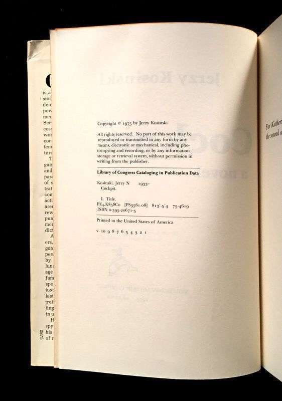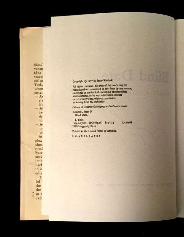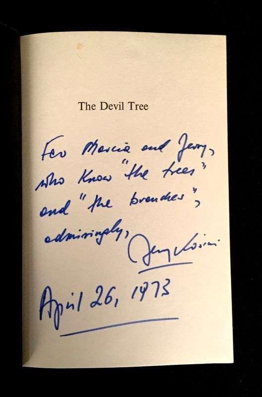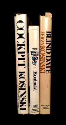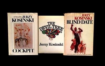 (Literature). Kosinski, Jerzy : signed copies. 3 vols: The Devil Tree. New York: Harcourt Brace Jovanovich, (1973). First edition. 12mo, original boards, dust jacket (some creasing). Cockpit. Boston: Houghton Mifflin, 1975. First edition, first printing. 8vo, original gold and silver lettered cloth, dust jacket (small chipping at spine panel ends). * Blind Date. Boston: Houghton Mifflin, 1977. First edition, first printing. 8vo, original cloth, dust jacket (occasionally slightly dusty, some chipping at spine panel ends). Each a presentation copy, inscribed to Marciarose and Jerry [Jerome Shestack], dated and signed by Jerzy [Kosinski] on each volume's half title, the half titles of Blind Date and Cockpit are also embellished by ink drawings in Kosinski's hand, a typed note signed by Jerzy [Kosinski] to the Shestacks is inserted in Cockpit.Shestack, Jerome, distinguished American Jurist, President of the American Bar Association, U.S. ambassador to the United Nations Commission on Civil Rights.Shestack, Marciarose, prominate American television journalist, first American woman to lead a major market television news program."