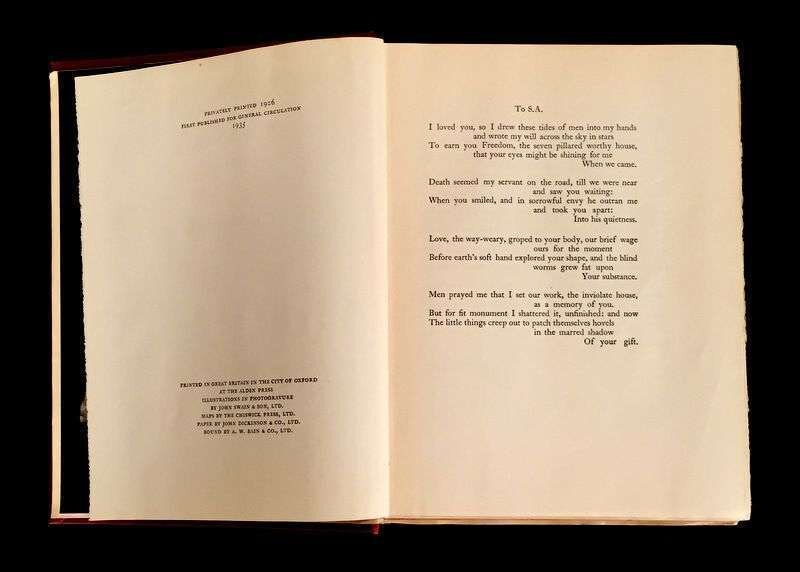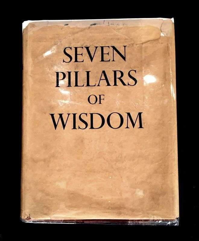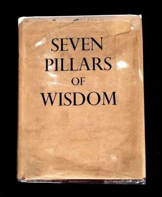 1 vol. 4to, brown cloth, gilt, t.e.g., other edges untrimmed; minor wear, dust jacket (some creasing, small tears, minor, occasional dust smudging, top of spine panel chipped away - losses to most of the word ""Seven"" at top of panel, corners chipped, large chip at bottom left corner and adjacent areas of back panel, some loss at top of back panel. Fold maps, plates. Internally clean. Partly unopened. Signed by Peter O'Toole below the author's portrait on the plate facing p. 610.