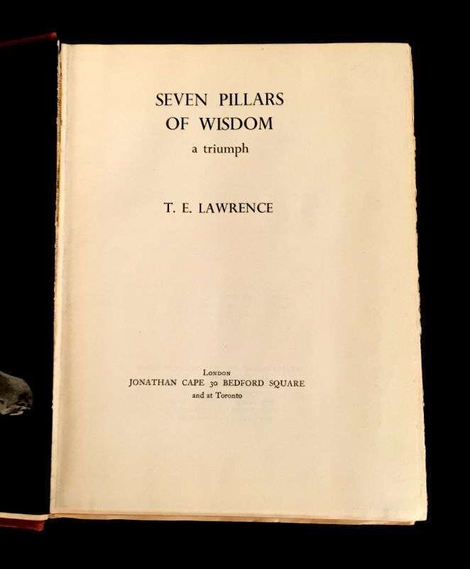 (Literature). Lawrence, T. E. Seven Pillars of Wisdom, a Triumph. London: Jonathan Cape, (1935). First trade edition. Signed by Peter O'Toole.