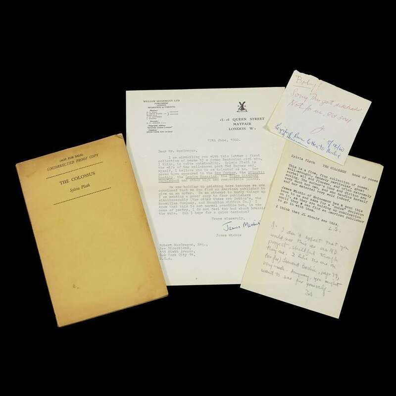 (Literature). Plath, Sylvia. The Colossus. London: Heinemann, (1960). Uncorrected proof copy in original wrappers.