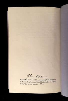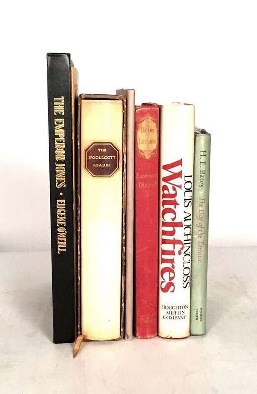 (Literature). 7 vols. Signed Books: Auchincloss, Louis. Watchfires. Boston: Houghton Mifflin, 1982. First printing. 8vo, original cloth, dust jacket. Signed by Louis Auchincloss on front free endpaper recto. * Bates, H. E. The Day of the Tortoise. London: Michael Joseph, (1961). First edition. Small 8vo, original gilt-lettered green cloth, dust jacket. Illustrated by Peter Farmer. Presentation copy, inscribed, dated, ""1/62,"" and signed by H. E. Bates on front free endpaper recto. * Cheever, John. Homage to Shakespeare. Stevenson, Connecticut: Country Squires Books, (1968). #78/150 signed by John Cheever. 8vo, original gilt-lettered green cloth, dust jacket with printed label. * Sitwell, Osbert. Demos the Emperor. London: Macmillan, 1949. #288/500 signed by Osbert Sitwell. 8vo, original pictorial sewn wrappers. In original envelope. * Durrell, Lawrence. Bitter Lemons. London: Faber and Faber. (1957). First edition. 8vo, red cloth, gilt; scuffed, slightly cocked. Signed and dated, ""1964,"" by Lawrence Durrell on front free endpaper recto. * O'Neill, Eugene. The Emperor Jones. New York: Boni and Liveright, 1928. #472/775 signed by Eugene O' Neill. 4to, original cloth-backed boards Illustrated by Alexander King. Lacking slipcase. * Woolcott, Alexander, editor. The Woolcott Reader. New York: Viking, 1935. #972/1500 signed by Alexander Woolcott. 8vo, original cream paper vellum, morocco labels, glassine, slipcase. Light shelf wear unless otherwise indicated.