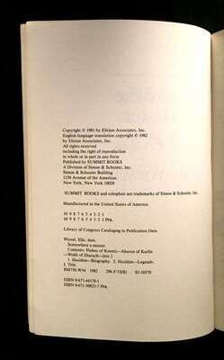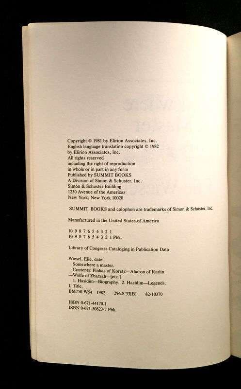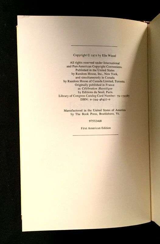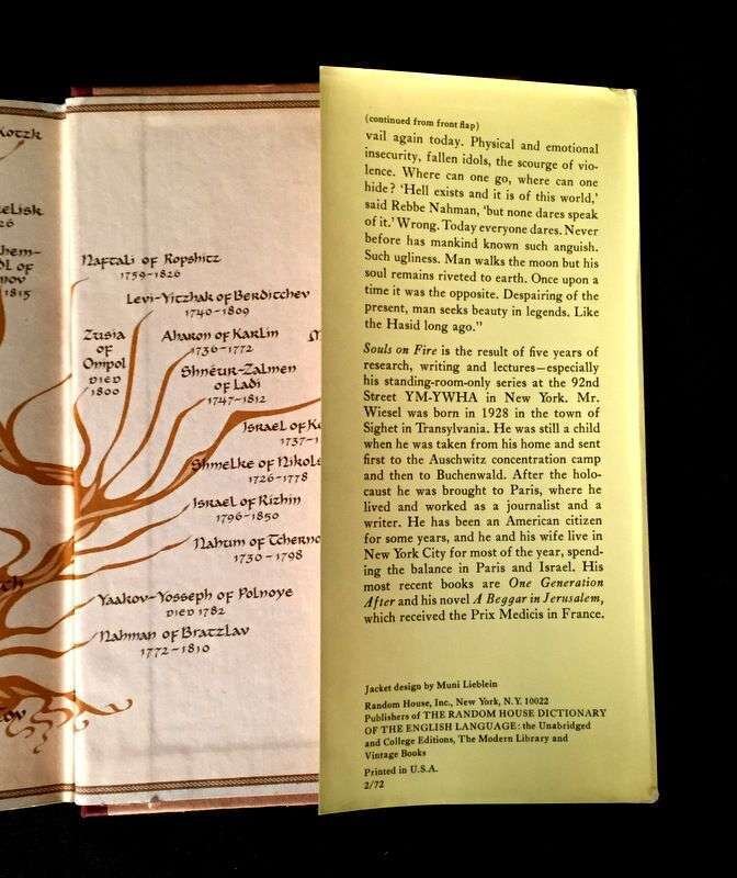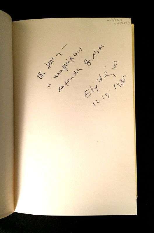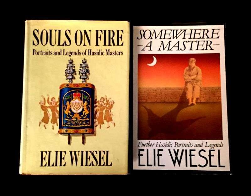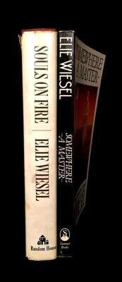 (Literature). Wiesel, Elie - signed copies. 2 vols: Souls on Fire: Portraits and Legends of Hasidic Masters. New York: Random House, (1972). First American edition. 8vo, original boards dust jacket (price clipped, chipping at head and foot of spine panel). Presentation copy, inscribed to Jerry [Jerome Shestack], dated, "12-19-1985," and signed by Elie Wiesel on front blank page. * idem. Somewhere a Master: Further Hasidic Portraits and Legends. New York: Summit, (1982). 1st ptg. thus. 8vo, original stiff wrappers; light wear. Inscribed and signed in Hebrew by Elie Weisel on recto of publisher's device leaf at front. Shestack, Jerome, 1923 - 2011, distinguished American Jurist, President of the American Bar Association, U.S. ambassador to the United Nations Commission on Civil Rights.