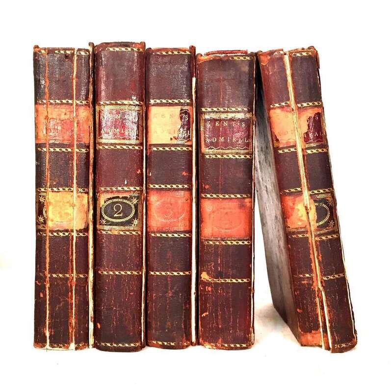 5 vols. 8vo, contemporary calf, rubbed and worn, joints mostly broken, binding. of vol. 5 broken. With 20 engraved plates on 16 sheets. Internally generally clean. Sold with all faults. At least 1 other copy described as containing 17 plates.