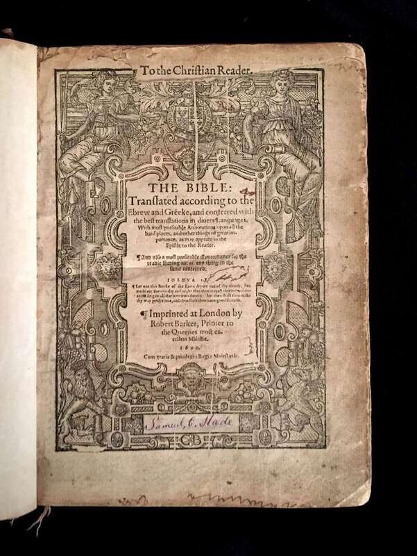 (Bible in English.) The Bible. London: Robert Baker, 1600.