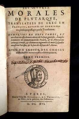(Early Continental Imprints : Classics in Translation). Plutarch. Les Oeuvres Morales. Paris: M. Guillemot, & S. Thiboust, 1616.