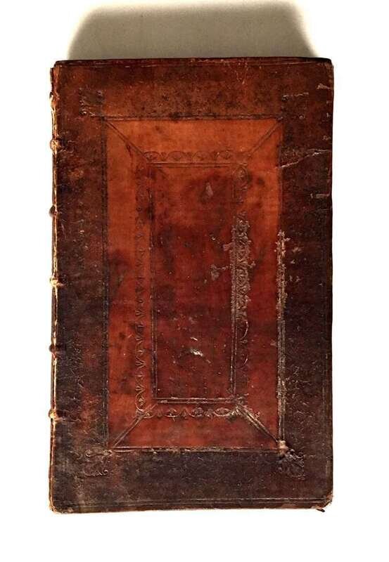 1 vol. 8vo, contemporary blind paneled calf; occasionally scuffed, joints stressed, front joint starting to break. Small worming to front matter, title, and first 2 signatures - minor losses to text. Complete with half title. Internally generally clean. Late 18th-century 20 line ink manuscript biographical sketch of the English courtier Sir Anthony Browne (d. 1548), associated with the court of Henry VIII, on back free endpaper recto.