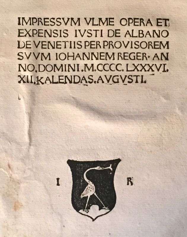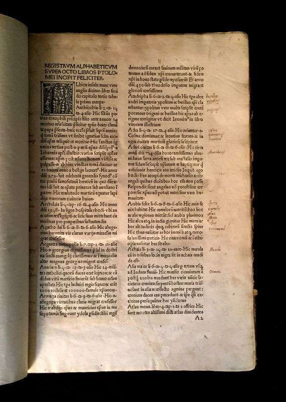 (Scranton Estate : Incunabula). Ptolemaeus, Claudius. Cosmographica. Ulm: Johann Rager for Justus de Albano, July 21, 1486.