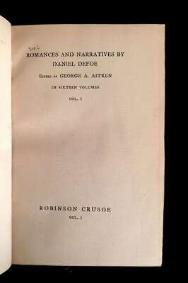 (Scranton Estate : Bindings). Defoe, Daniel. (Works) Romances and Narratives. London: J. M. Dent, 1895. Library Edition, #1/500.