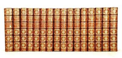16 vols. Small 8vo, contemporary 3/4 crushed brown niger morroco and cloth, gilt, richly gilt spine compartments, t.e.g., other edges rough cut, raised bands; occasionally scuffed, small losses at head bands of vols. 6, 7, 8, and 14 by Morrell. Portrait and photogravure plates after J. B. Yates. Internally clean, untrimmed.