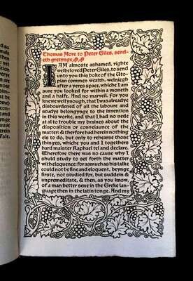 (Scranton Estate : Private Press). (Kelmscott Press.) More, Sir Thomas. Utopia. (Hammersmith), 1893. #1/300 (of 308).