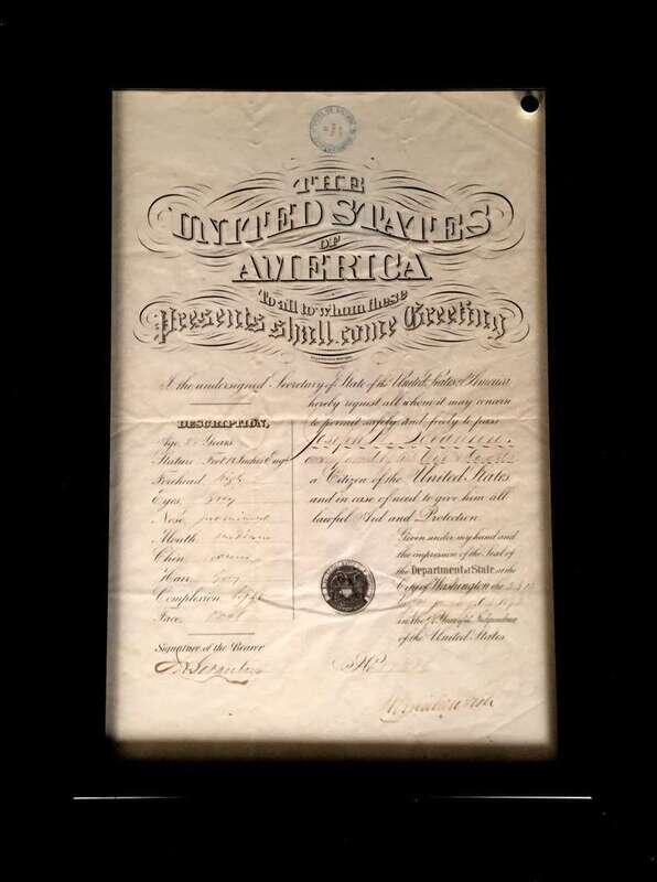 1 piece. Document Signed. 1 p., folio. Passport issued to Joseph Scranton and Wife. Partly printed, filled in manuscript. Signature starting to brown and partly to fade.
