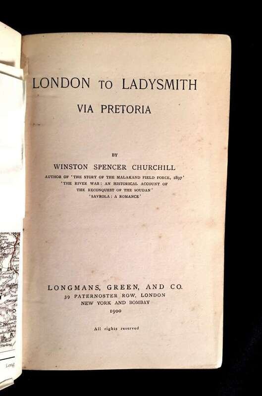 (Scranton Estate). Churchill, Winston Spencer. London to Ladysmith via Pretoria. London: Longmans, Green, 1900. First edition, first printing.