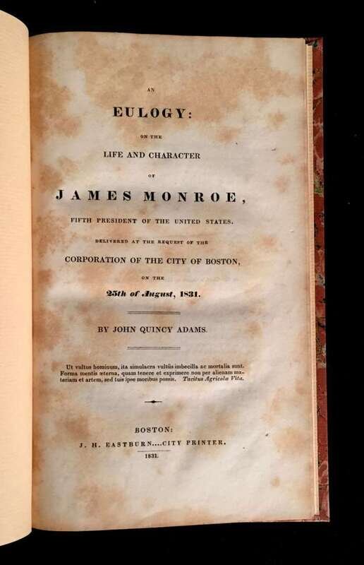 (Scranton Estate : Americana : Presidential). Adams, John Quincy. An Eulogy on the Life and Character of James Monroe. Boston: Eastburn, 1831. First edition.