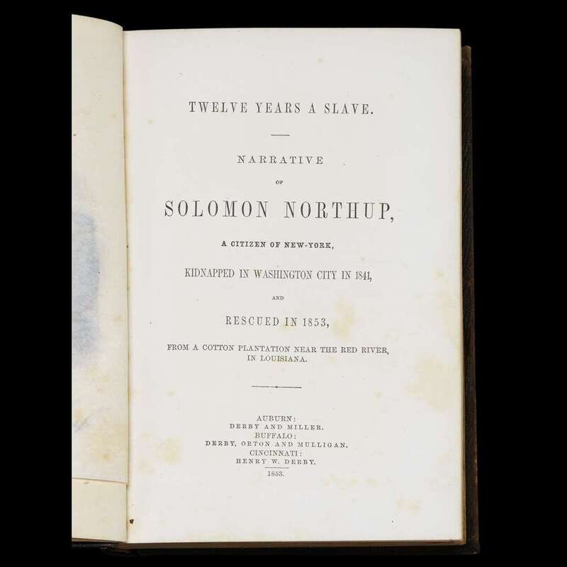 (Americana Africana). Northup, Solomon. Twelve Years a Slave. Narrative of Solomon Northup, a Citizen of New York, Kidnapped in Washington City in 1841, Rescued in 1853 from a Cotton Plantation Near the Red River, in Louisiana. Auburn: Derby and Miller; Buffalo: Derby, Orton and Mulligan; Cincinnati: Henry W. Derby, 1853. First edition, first issue.