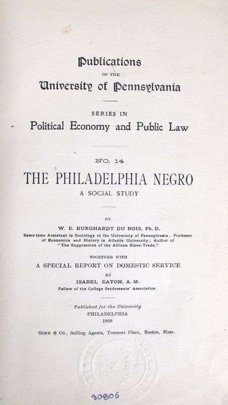 (Americana Africana). DuBois, W.E. Burghardt. The Philadelphia Negro: Social Study. Phila: Publications of the Univ of Pennsylvania, Ginn & Co, Selling Agents, 1899. 1st edition.