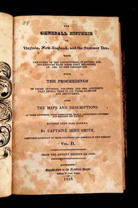 (Americana : Exploration). Smith, Captaine John. The Travels, Adventures and Observations. Richmond: Franklin Press, 1819.