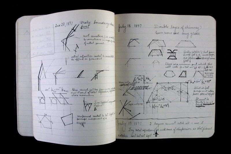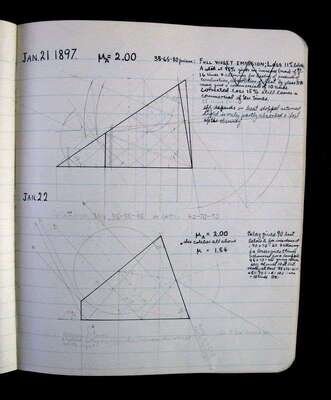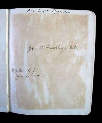 (Americana : Industry). Lot of Manuscript and Printed Material relating to John A. Roebling's Sons Company, Trenton, New Jersey. Includes: Manuscript Laboratory Diary, "Arc Light Reflector. Trenton, N.J., June 17, 1895." Small 4to, original flexible black leather; light wear. Ink notes, ink and pencil diagrams and figures, approximately 34 p., dated June 17, 1895 - January 25, 1898. With the name of the company's deceased founder, "John A. Roebling C. E." on front free endpaper. Internally clean. * Autograph Letters (2) Signed. Roebling, W(ashington) A.: Trenton, July 22, [1898]. 1 p. 24mo; Atlantic City, May 15, 1904. 1 p., 4to. * Original Photo. Architectural view of the home of Washington A. Roebling and family, Troy, New York. Mounted albumen print, 9 1/2 inches x 7 3/8 inches; 241 x 187 mm, ca. 1880s. Some spotting, primarily to mount. * 1 Vol. Schuyler, Hamilton. The Roeblings. Princeton Univ. Press, 1931. #123/150. 8vo, original gilt-lettered green cloth. Plates. Light shelf wear. * 1 Vol. Roeblings, Johann August. Diary of My Journey to America...1831. Trenton: Roebling Press, 1931. 12mo, original cloth, cover label. Frontispiece. Light wear. * 1 Vol. John A. Roebling's Sons Co., publisher. Suspension Bridges: A Century of Progress. Trenton, (ca. 1935). 8vo, original flexible stiff wrappers. Illustrated. Minor wear.