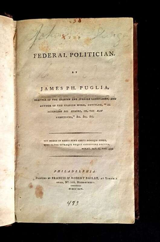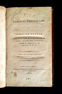 (Americana : Law and Government). Pugila, James Ph. The Federal Politician. Philadelphia: Francis and Robert Bailey, 1795. First edition.