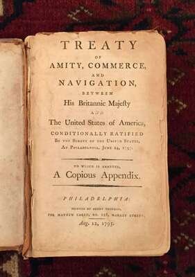 (Americana : Law and Government) Treaty of Amity, Commerce and Navigation, between His Britannic Majesty and The United States of America, Conditionally Ratified by The Senate of The United States at Philadelphia, June 24, 1795. To which is Annexed a Copious Appendix. Philadelphia: Henry Tuckniss for Mathew Carey, August 12, 1795.