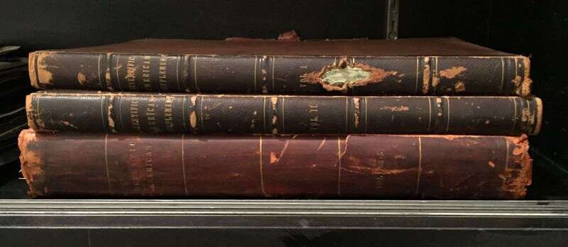 (Americana : Periodical Literature). Scientific American. New York, 1876. Vols. 34 and 35, with the Supplement issues. Altogether 3 vols. In folio, contemporary calf and marbled boards and/or contemporary morocco and cloth. Supplement in 2 Vols. Extremities rubbed. Wood engraved illustrations throughout. Internally clean, bindings holding, front endpapers of Supplements loose. With general title and Supplement Vol. 2 title.