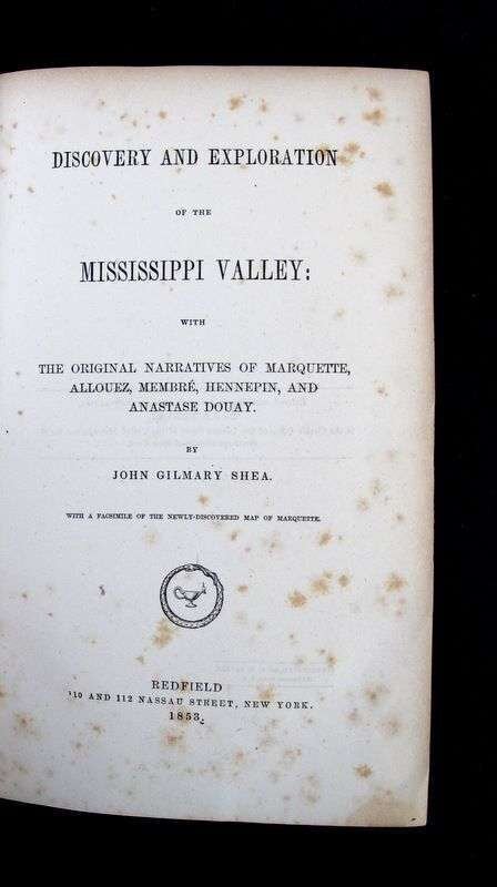 (Americana : Travel and Exploration). Shea, John Gilmary. Discovery and Exploration of the Mississippi Valley. New York: Redfield, 1853. Second edition.